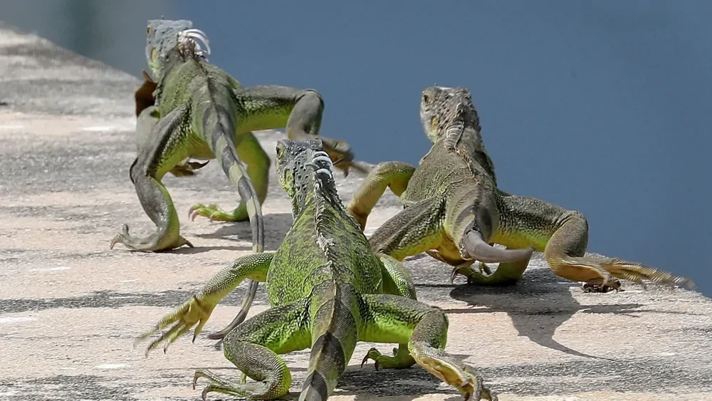 Несмотря на размеры, игуаны отлично лазают и плавают, а их феноменальная плодовитость позволяет популяции быстро расти. Самка откладывает до 70 яиц, а новорождённые игуанчики с первых минут прекрасно выживают без помощи родителей. Пищи в тропиках достаточно, а при её нехватке рептилии с удовольствием едят отходы из мусорных баков.