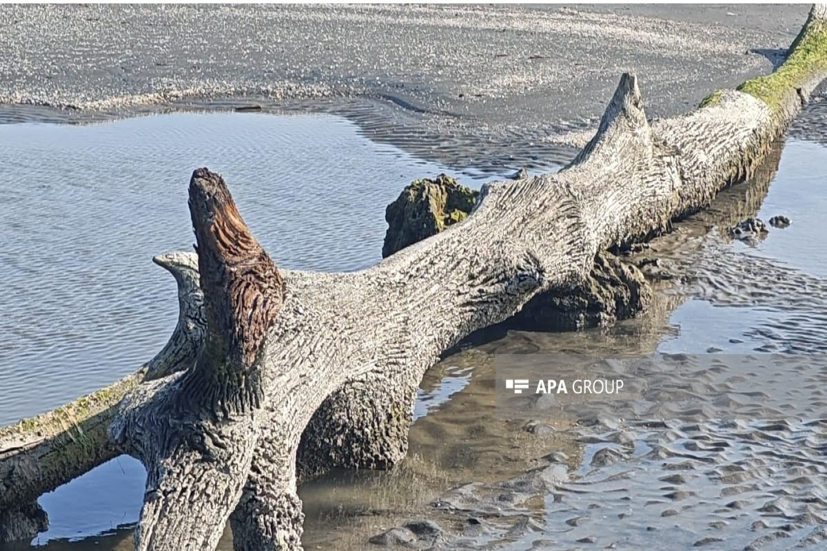 В Лянкяранском районе, на территории села Канармеша, в результате отступления Каспийского моря обнаружены останки древнего леса, который много лет находился под водой.
