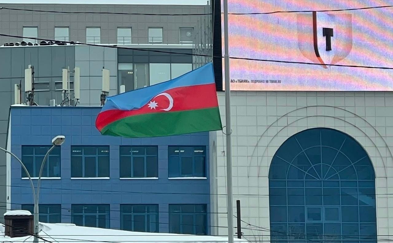 В знак траура перед зданием консульства национальный флаг Азербайджана был приспущен до половины мачты.