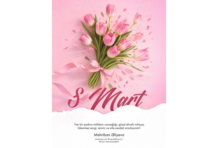 Первый вице-президент Азербайджанской Республики Мехрибан Алиева поделилась в своих аккаунтах в социальных сетях публикацией по случаю 8 Mарта — Международного женского дня.
