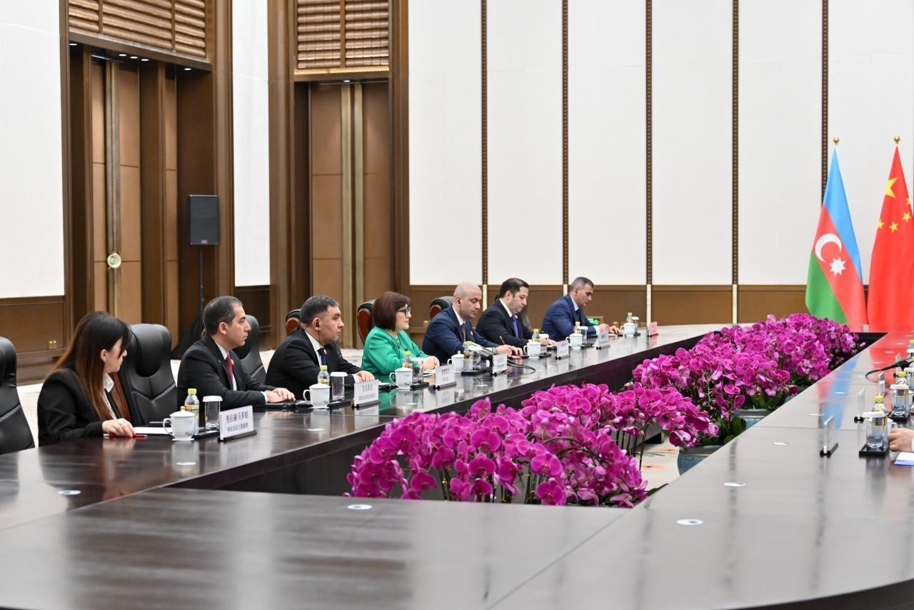 Спикер Милли Меджлиса Азербайджана Сахиба Гафарова в рамках визита в Китай провела встречу с председателем Постоянного комитета Всекитайского собрания народных представителей Цао Лицжи.