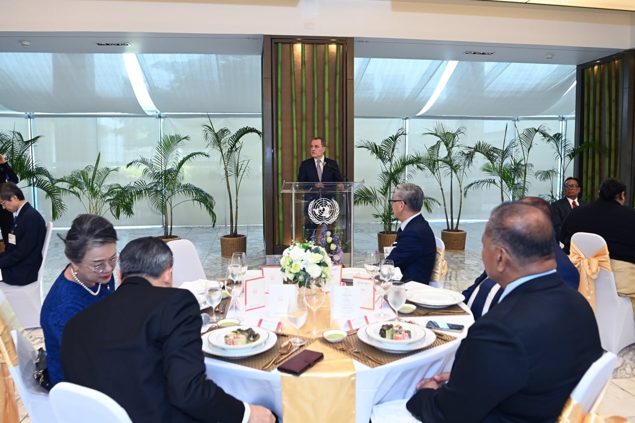 Министр иностранных дел Азербайджана Джейхун Байрамов принял участие в обеде и министерском диалоге, организованном ЭСКАТО, и выступил с речью.