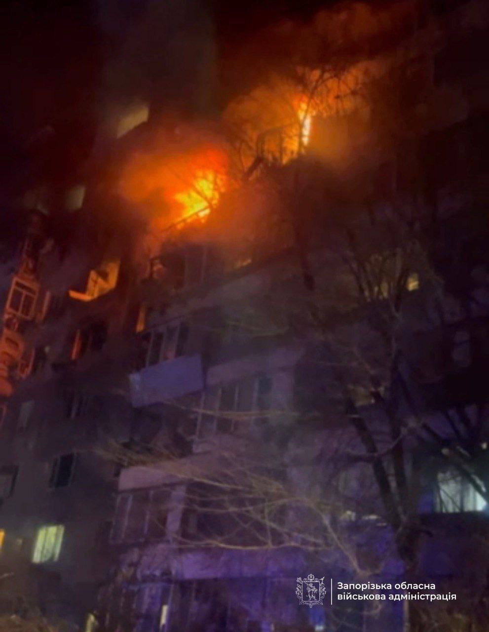 Под утро 16 декабря россияне ударили "Шахедом" по Запорожью. В результате атаки загорелся девятиэтажный жилой дом, пострадали люди. По состоянию на сейчас огонь уже потушили.