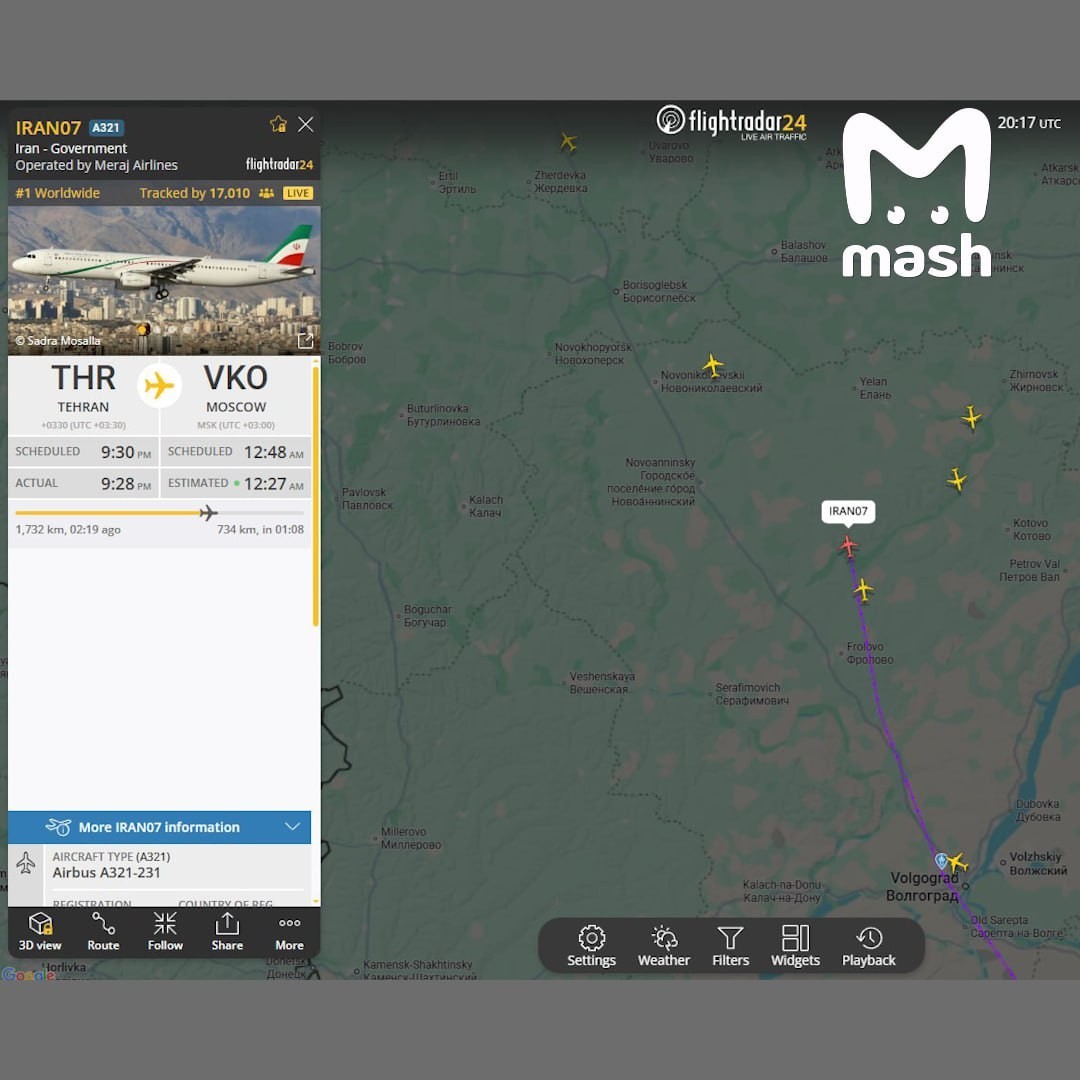 Как сообщают мониторинговые и медийные источники, на борту воздушного судна предположительно может находиться президент Ирана Масуд Пезешкиан, передает Vesti.az со ссылкой на Mash.