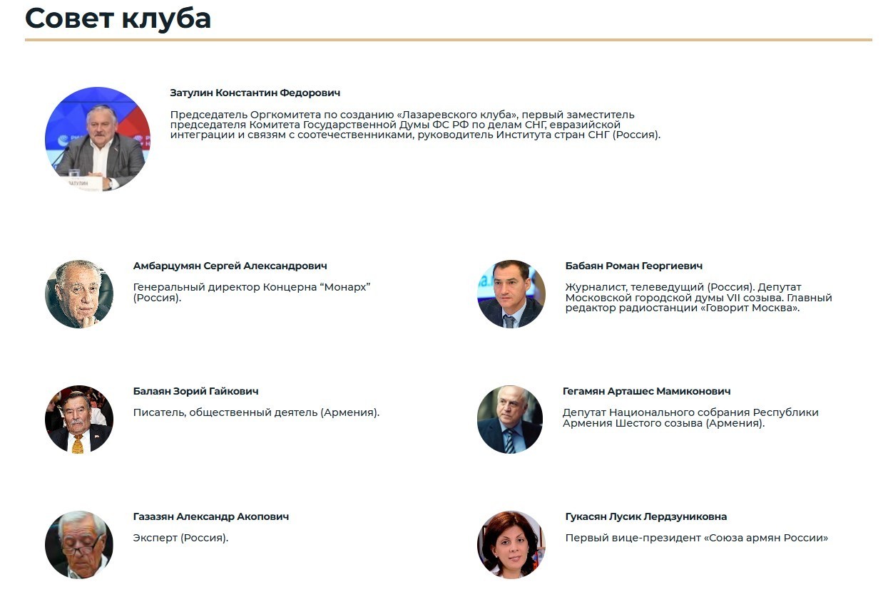 Примечательно, что многие действия, входившие в прямые обязанности Затулина, так и не были выполнены — от реакции на установку памятника фашистскому деятелю Гарегину Нжде до протестов против ограничения вещания российских телеканалов в Армении. Это лишь подтверждает, что «Лазаревский клуб» был для него не инструментом политики, а источником дохода.