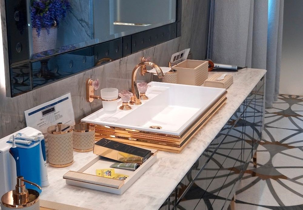 Внутри дворца — интерьеры «царского» уровня: просторные залы и спальни, личный медицинский центр, СПА-зона, криокамера, частная набережная и круглосуточная охрана. В одной из ванных комнат, согласно проектной документации, установлена фурнитура на сумму более 11 млн рублей, при этом одни только краны обошлись почти в 3 млн рублей.