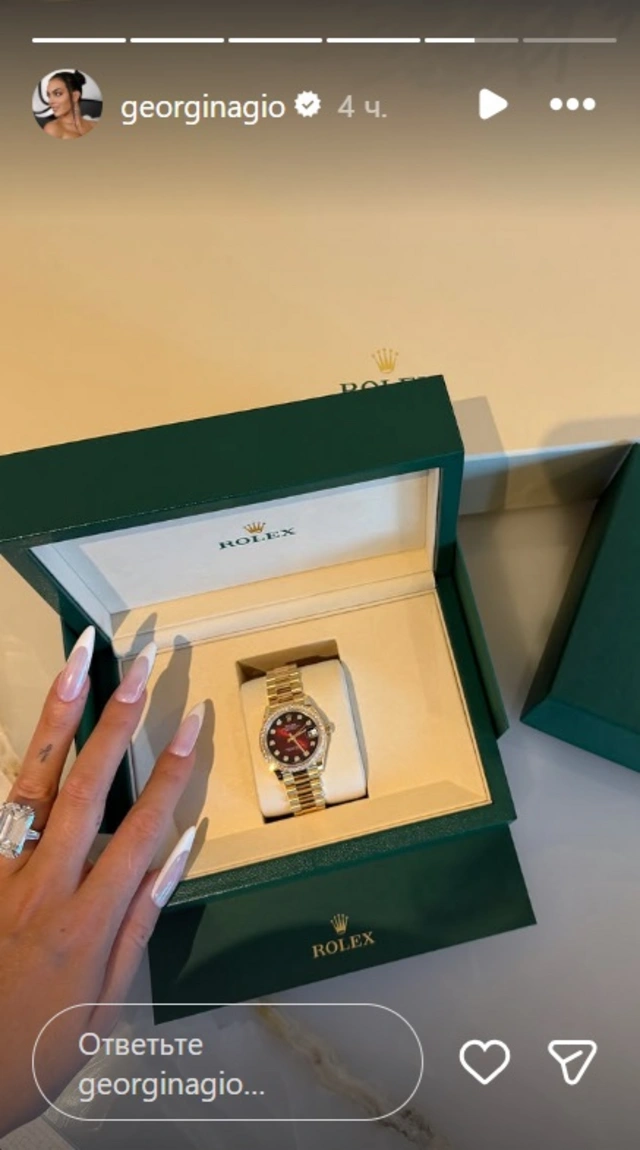 В ответ Родригес показала в сторис подарок от возлюбленного — эксклюзивные часы швейцарского бренда Rolex. По данным СМИ, их стоимость достигает 54 тысячи евро, что делает аксессуар особенно приятным.