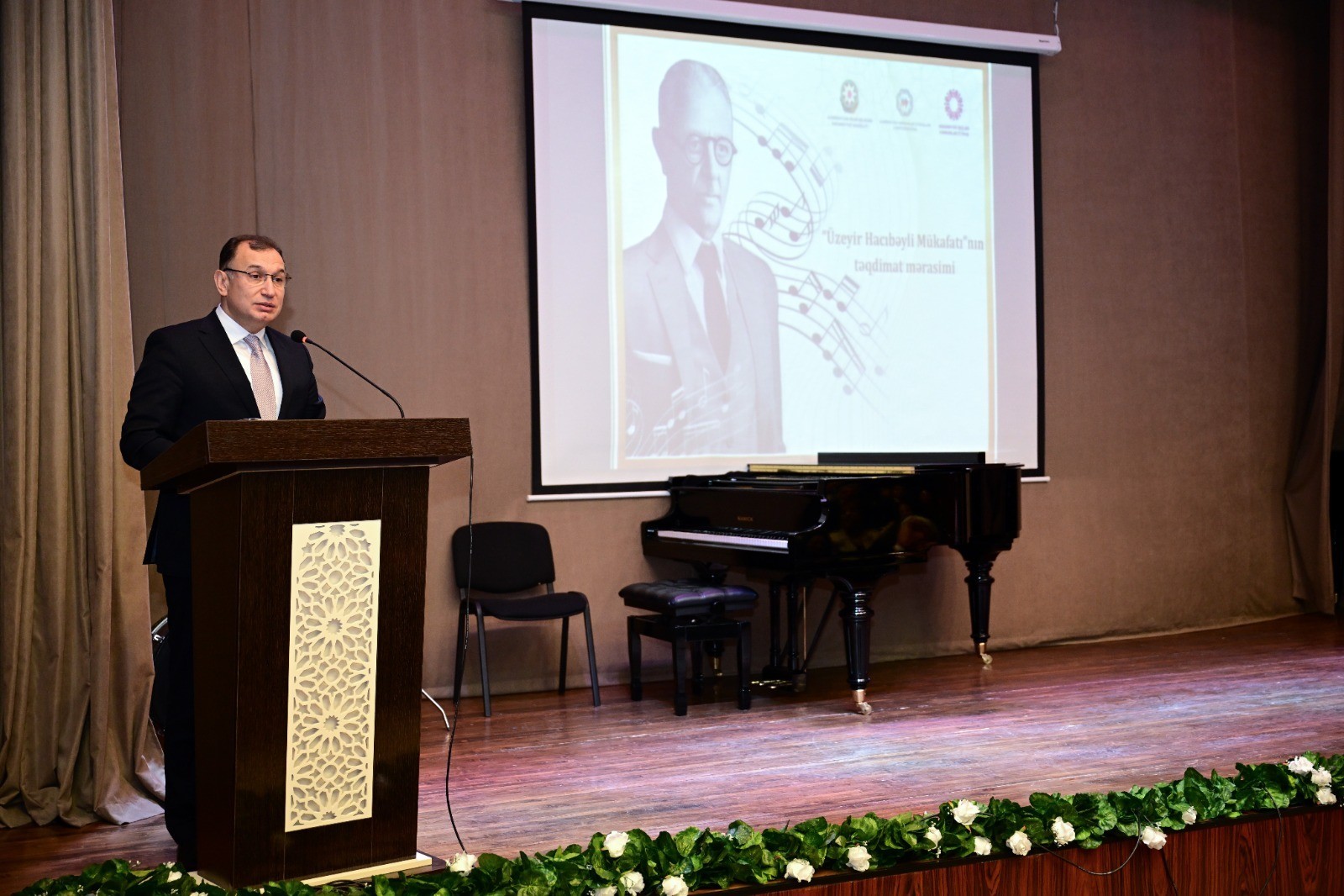 Выступая с приветственным словом, министр культуры Адиль Керимли рассказал об истории и значении Премии имени Узеира Гаджибейли. Он напомнил, что в соответствии с распоряжением Президента Азербайджанской Республики Ильхама Алиева в минувшем году в стране и за ее пределами широко отмечалось 140-летие со дня рождения великого композитора, основоположника профессиональной музыкальной культуры Азербайджана, музыковеда и общественного деятеля Узеира Гаджибейли.
