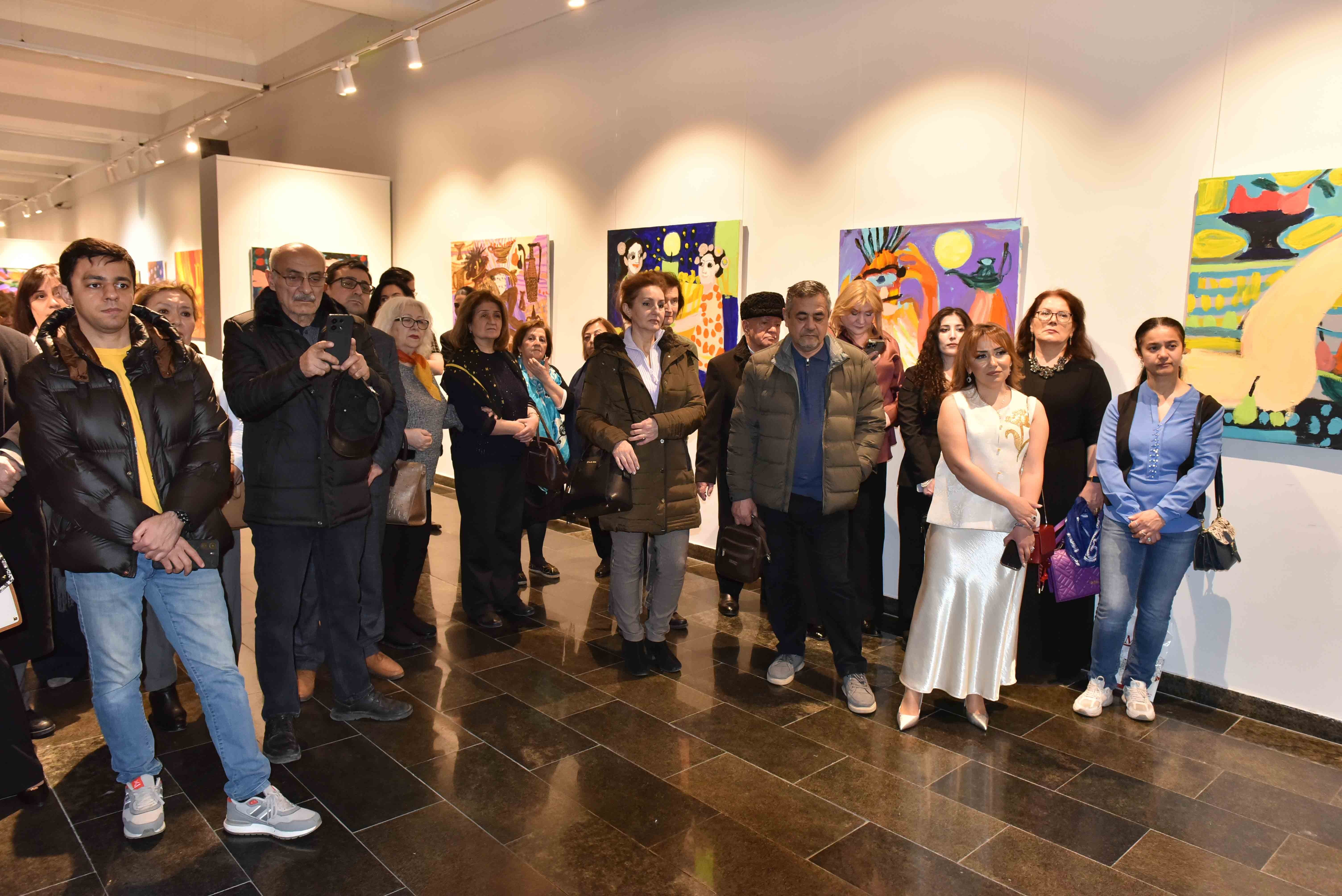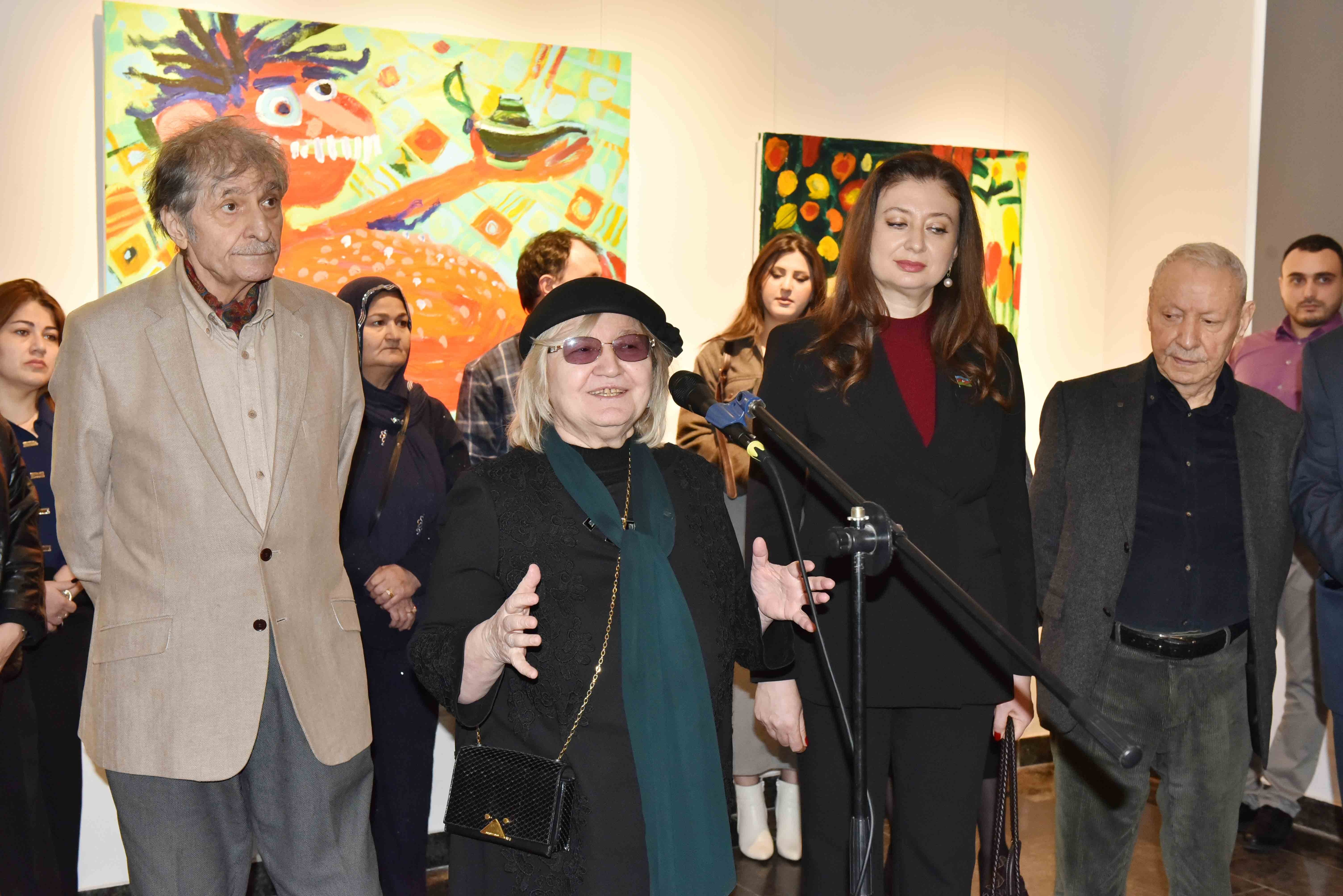 Председатель Союза художников Азербайджана, народный художник, профессор Фархад Халилов открывая выставку, подробно рассказал об экспозиции, отметил художественную значимость работ художницы и подчеркнул, что ее творчество может служить примером для многих художников.
