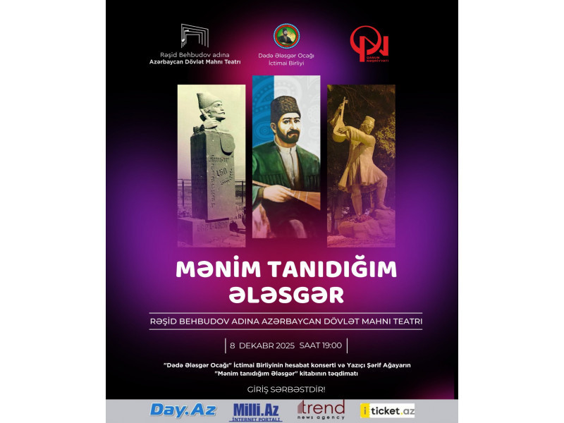 Как сообщает Vesti.az со ссылкой на АПА, мероприятие пройдёт одновременно с отчётным концертом общественного объединения «Очаг Даде Алескера». Книга включает очерки о выдающемся поэте, Ашуге Алескере.