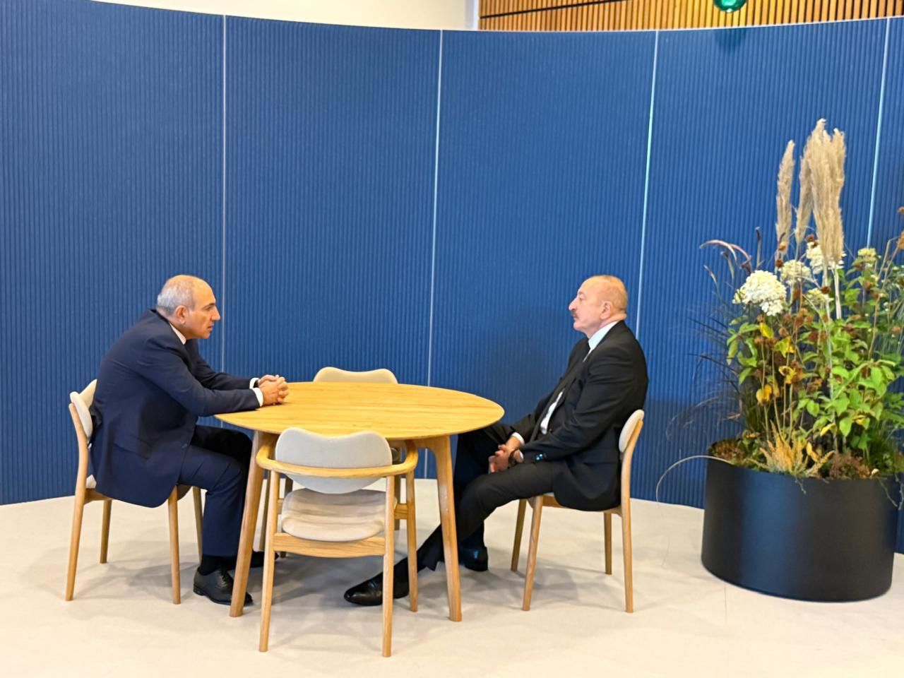 В Копенгагене на полях 7-го саммита «Европейского политического сообщества» состоялась встреча Президента Азербайджана Ильхама Алиева с премьер-министром Армении Николом Пашиняном.