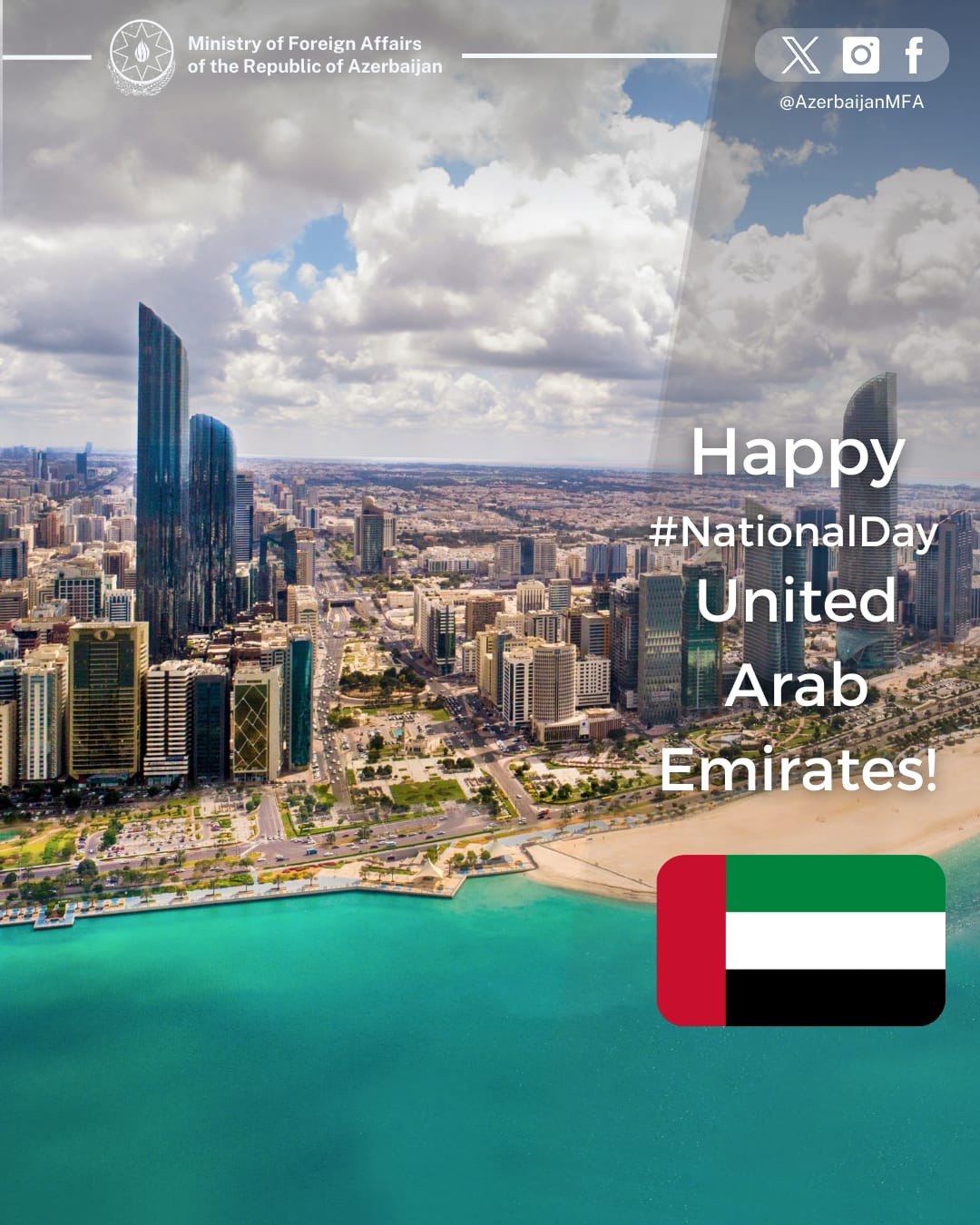 Министерство иностранных дел Азербайджана поздравило Объединённые Арабские Эмираты с Национальным днём.