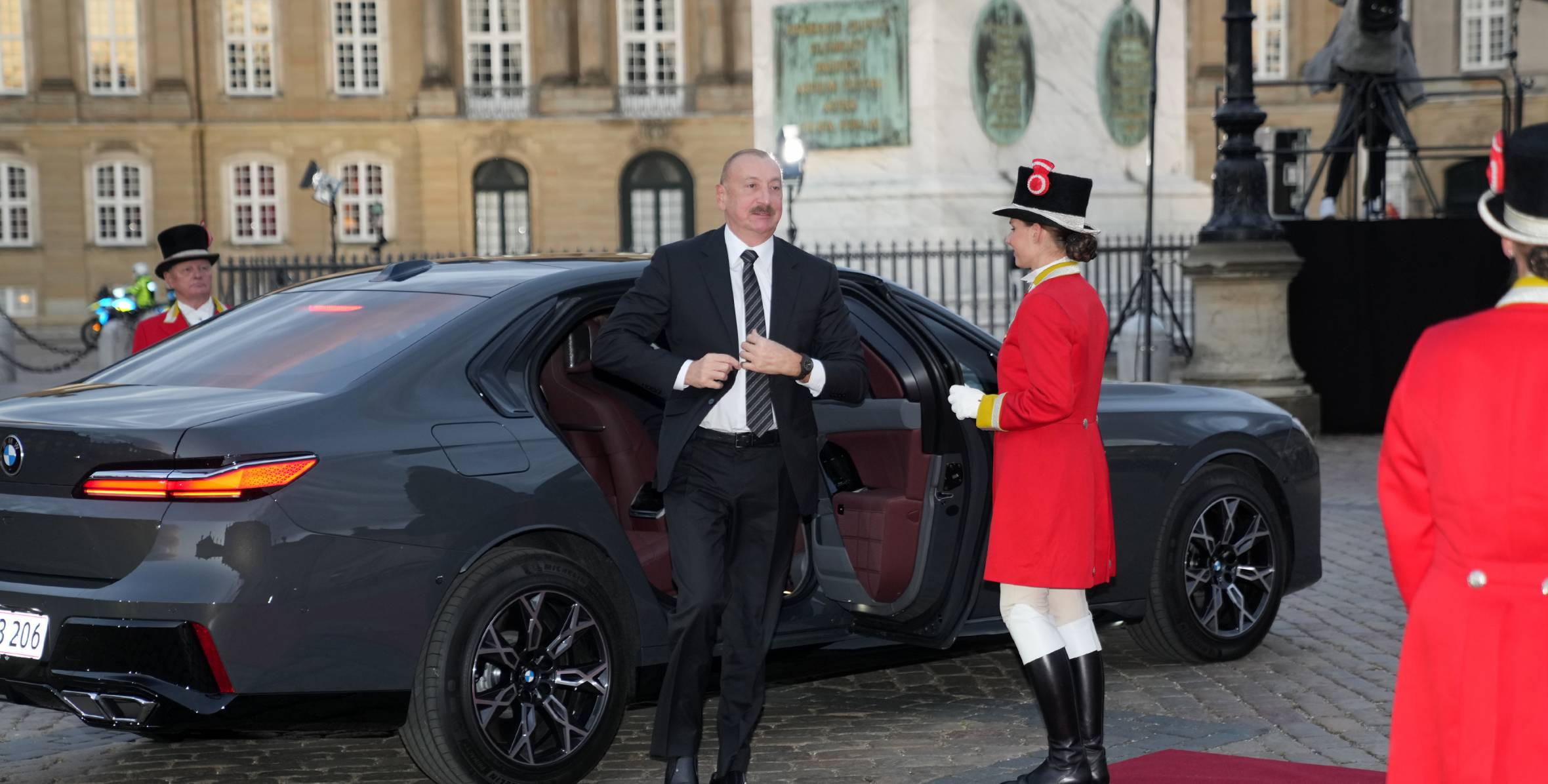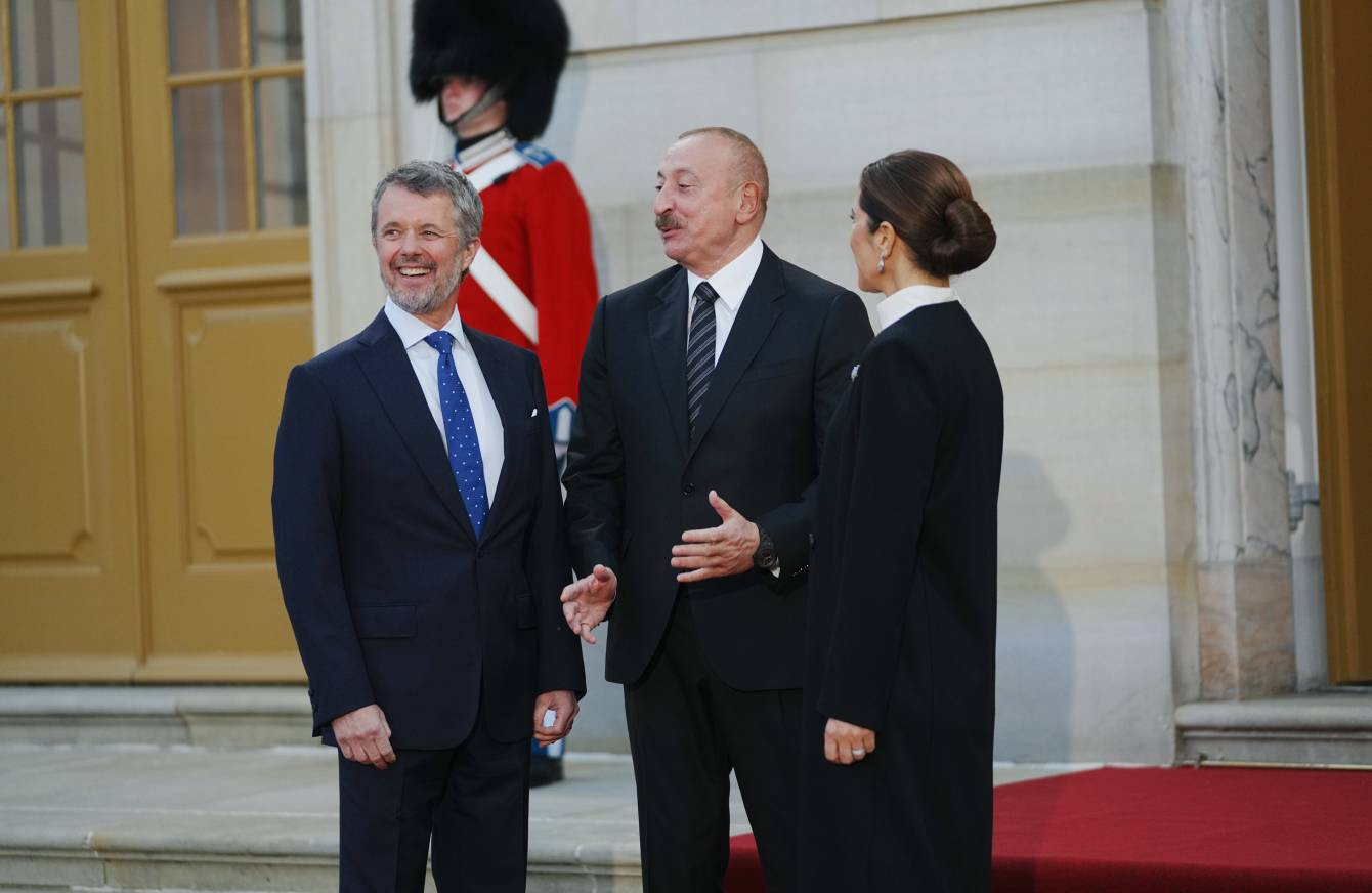 В международном аэропорту датской столицы президента Азербайджана и Первую леди Мехрибан Алиеву встретили официальные лица. Визит начался с участия в торжественных мероприятиях, организованных принимающей стороной: Алиев присутствовал на банкете, устроенном от имени короля Дании Фредерика X и королевы Мэри Елизабет для лидеров стран-участниц саммита.