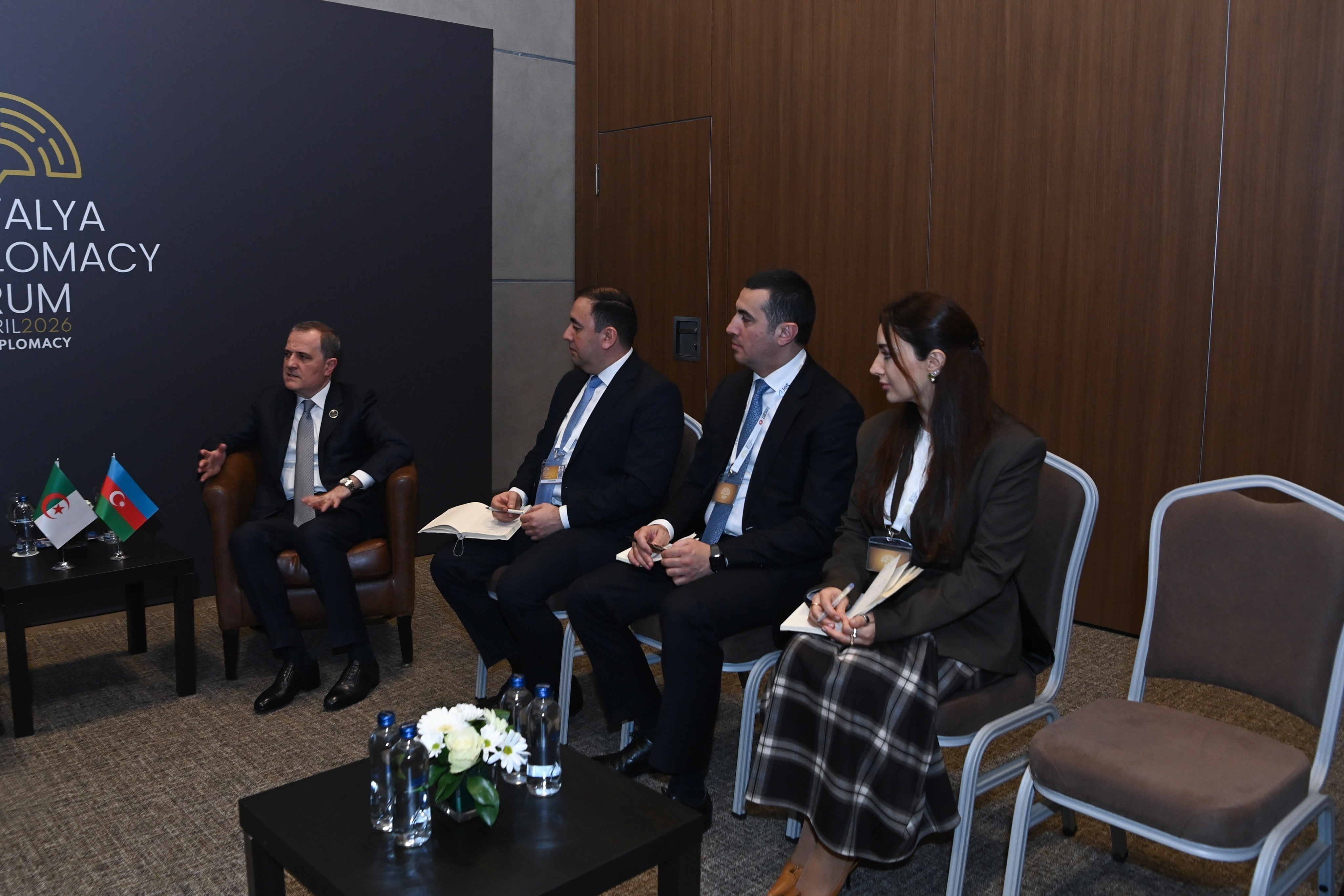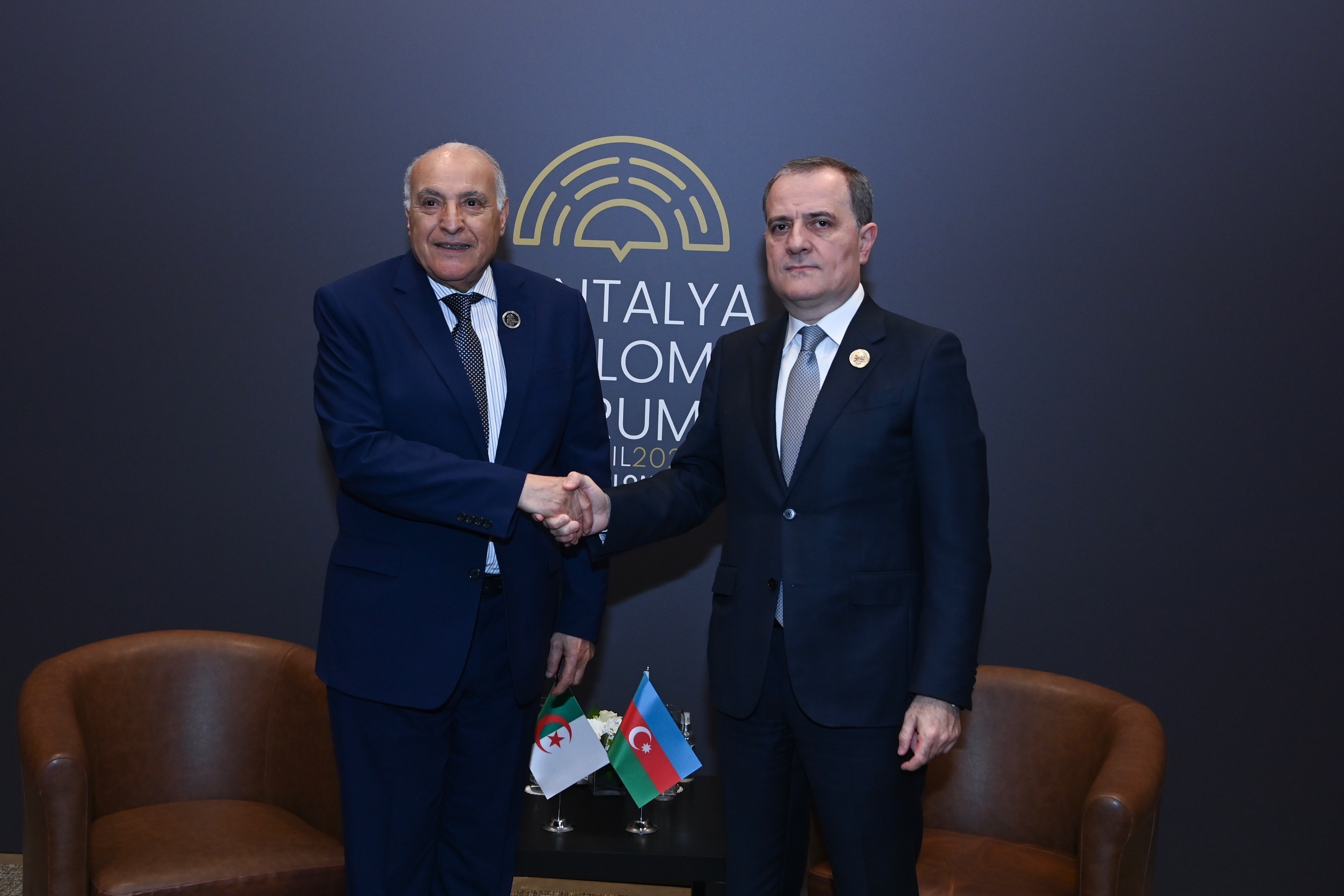 В рамках V Анталийского дипломатического форума министр иностранных дел Азербайджана Джейхун Байрамов встретился с министром иностранных дел и национальной общины за рубежом Алжирской Народной Демократической Республики Ахмедом Аттафом.