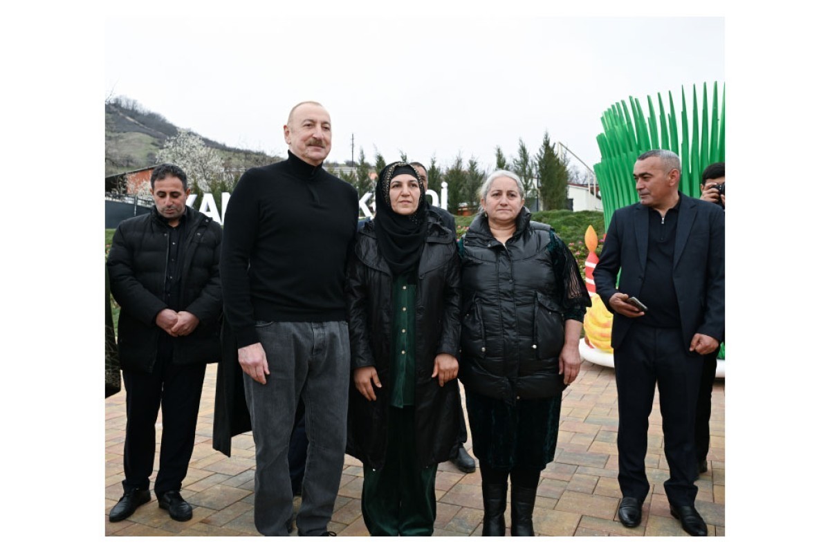 Затем Президент Ильхам Алиев и Мехрибан Алиева встретились с жителями, переселившимися обратно в Ханоба.
