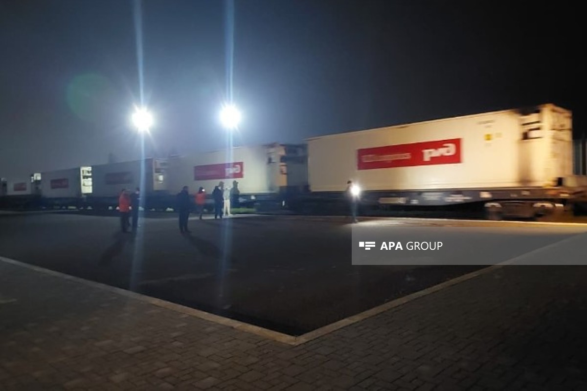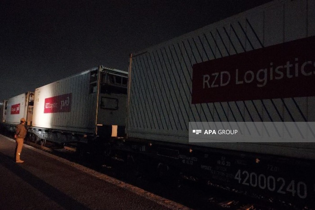 Грузовой поезд с гуманитарной помощью из России для Ирана, проходящий через территорию Азербайджана, прибыл на станцию Астара.
