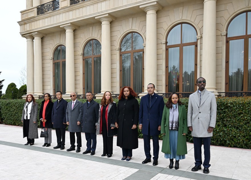 Президент Азербайджана Ильхам Алиев и первая леди Мехрибан Алиева встретили премьер-министра Эфиопии Абия Ахмеда Али и первую леди Зинаш Тайячеу.