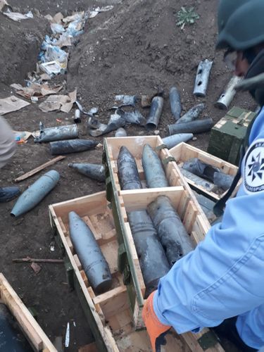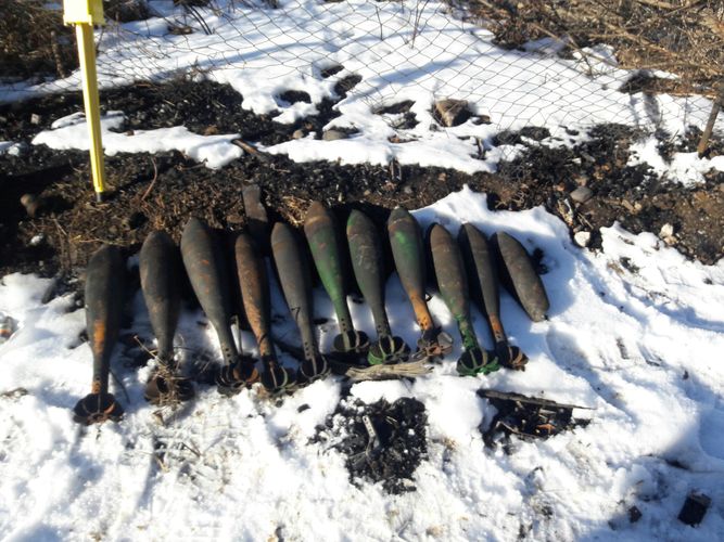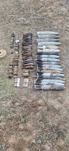 В ходе оперативно-розыскных мероприятий были обнаружены 796 неразорвавшихся боеприпасов, 2 бомбы, 8 противопехотных мин, 87 противотанковых мин, 3 взрывателя противотанковых мин и 19 осколков снарядов.