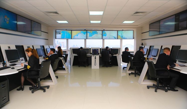 Национальный центр осуществляет обмен информацией с Центром управления в кризисных ситуациях Министерства по чрезвычайным ситуациям, Военно-морскими силами Министерства обороны, дежурными службами береговой охраны Государственной пограничной службы, соответствующими структурами Каспийского морского пароходства, ГНФАР и BP.