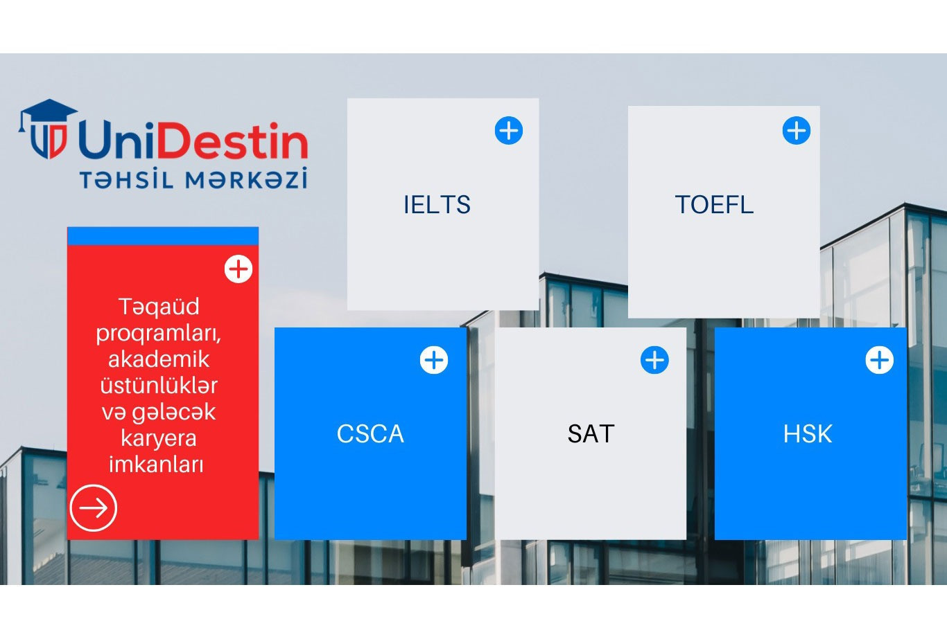 Учитывая эту потребность, UniDestin организует курсы подготовки к IELTS, TOEFL, SAT и HSK для студентов, желающих учиться за рубежом, в соответствии с требованиями университетов. Занятия проводятся местными и иностранными преподавателями, программы основаны на международных экзаменационных форматах и предлагаются как индивидуально, так и в группах в зависимости от уровня студента.