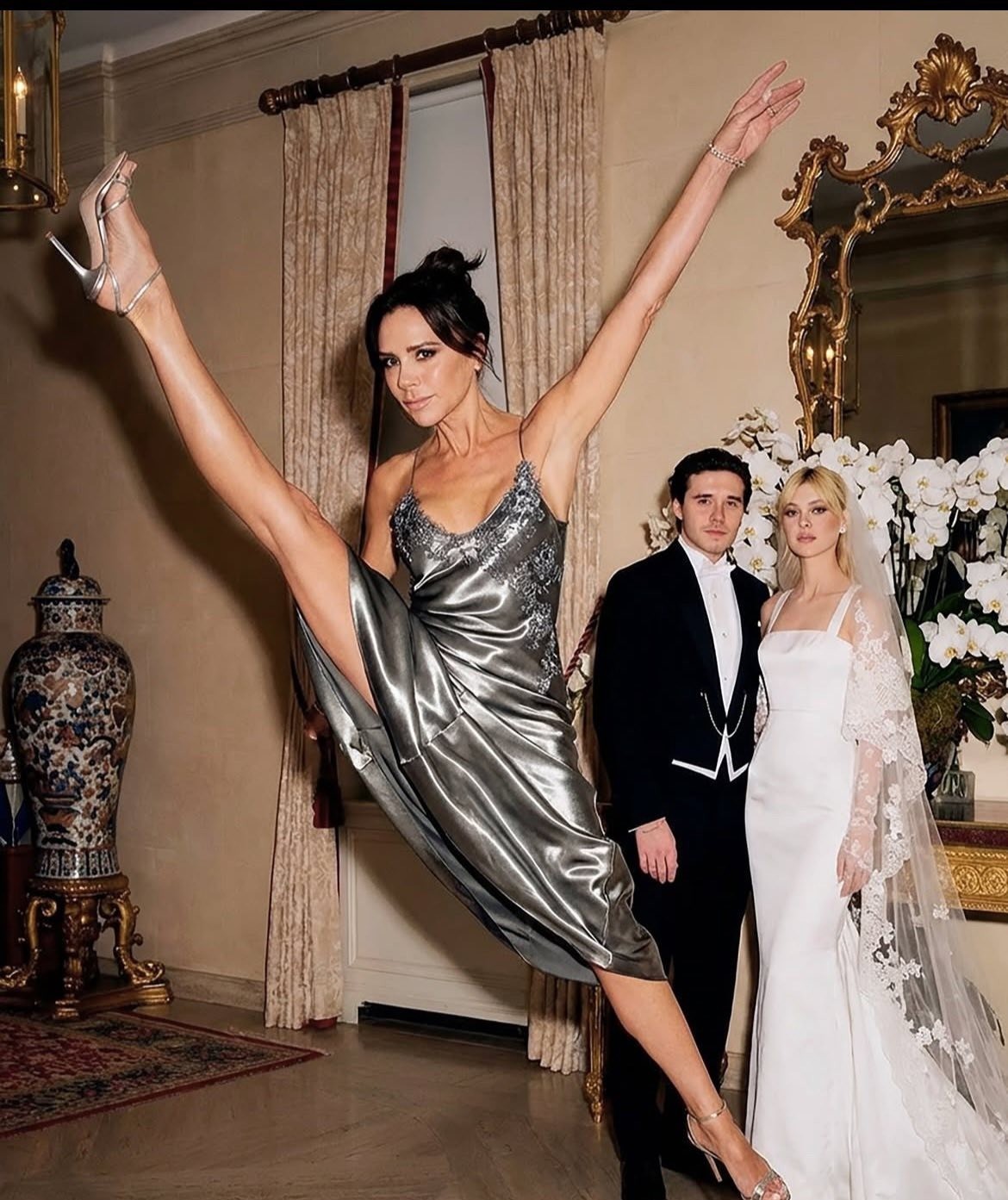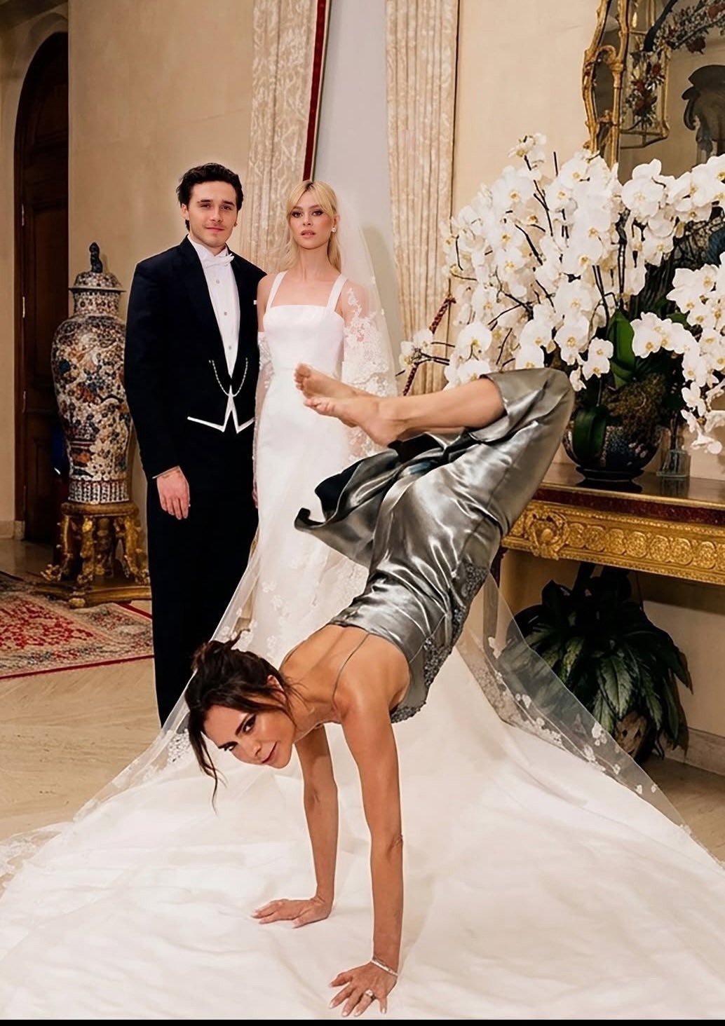 В сетях завирусился шпагат Виктории Бекхэм на фоне свадебной фотографии сына-ФОТО