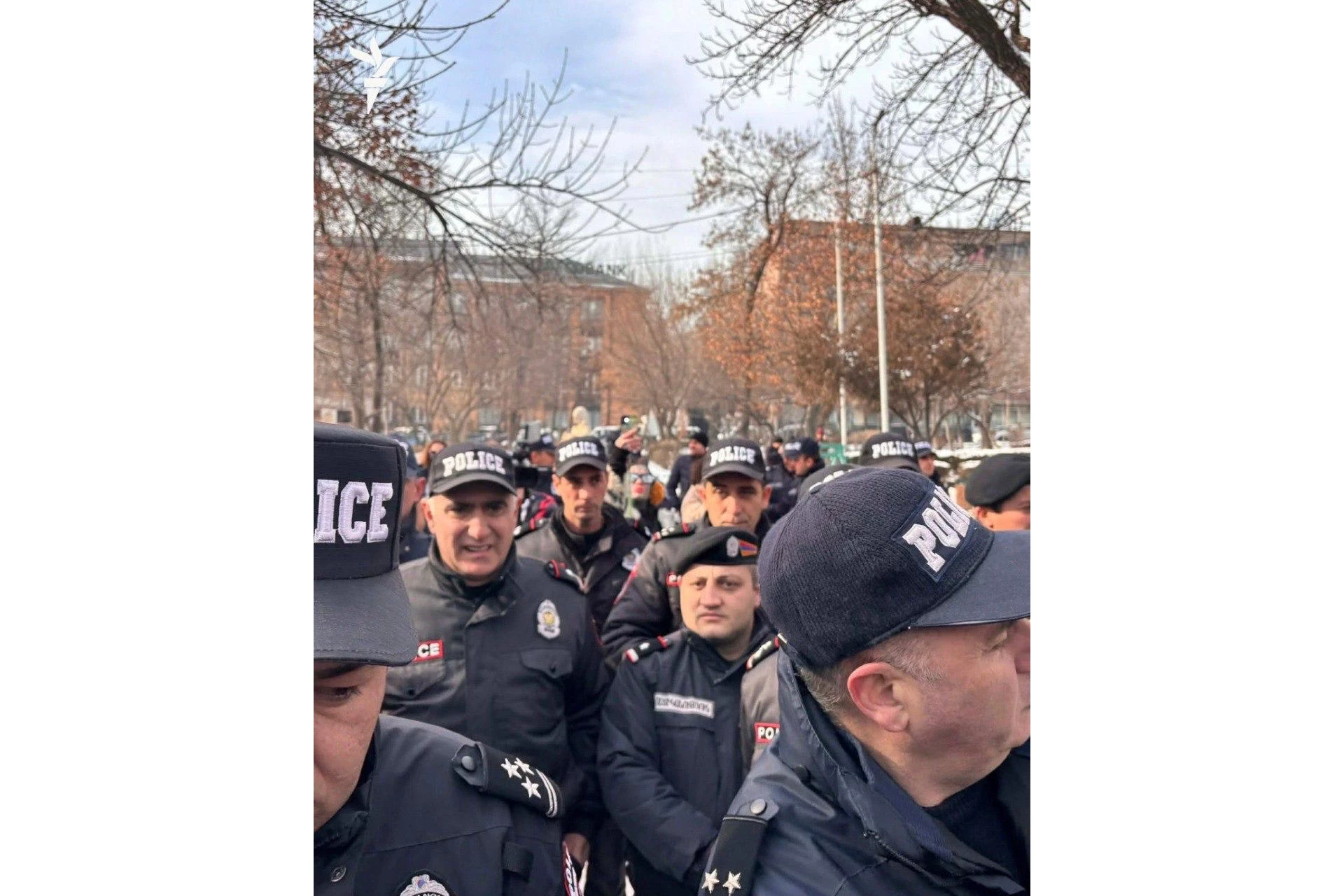 Полиция в Ереване заблокировала попытку участников акции протеста пройти маршем от посольства Ирана к Голубой мечети.