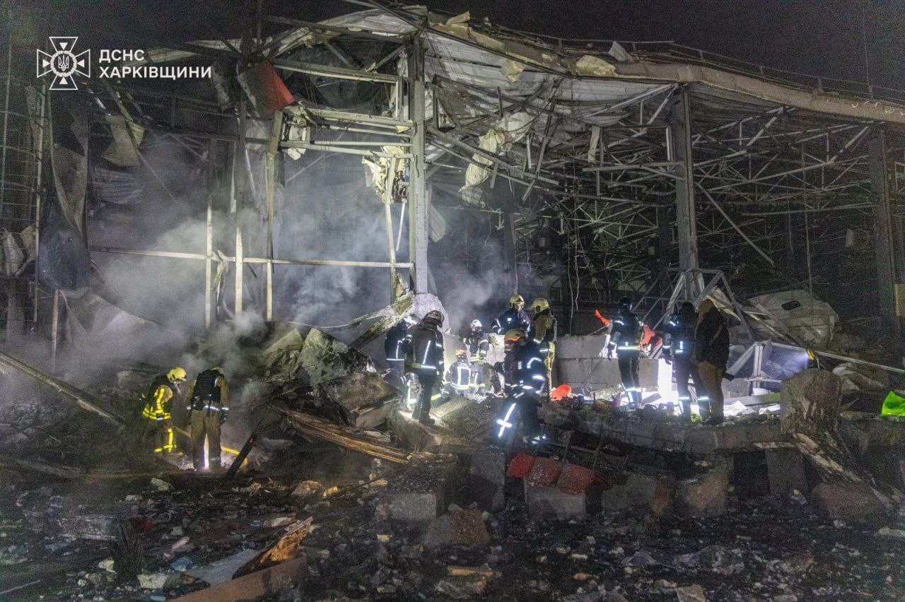 По данным ведомства, в пригороде Харькова был атакован почтовый терминал. В результате ударов погибли четыре человека. Здания на территории терминала получили серьёзные повреждения, возникли очаги возгорания. Сотрудники ГСЧС спасли 30 человек, двоих извлекли из-под завалов. Пострадали шесть человек.