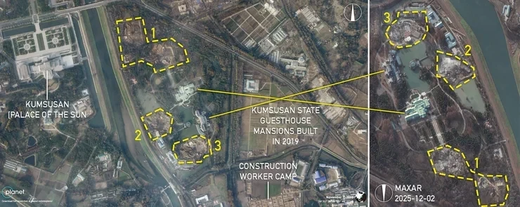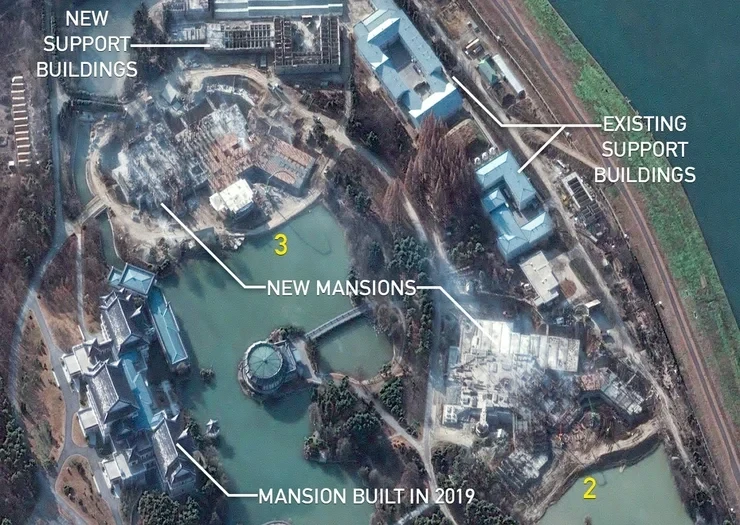 В Пхеньяне продолжается масштабное строительство сразу трёх роскошных особняков на территории гостевого комплекса Кымсусан, и расследователи предполагают, что один из них готовится специально для российского лидера Владимира Путина.