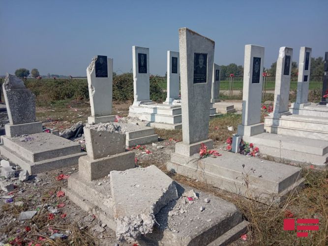 Выпущенные вооруженными силами Армении артиллерийские и ракетные снаряды разрушили надгробия на кладбищах Ахмедагалы-Чираглы, Хындырыстан-Пашабейли Агдамского района, а также Гапанлы-Гарагаджи Тертерского района.