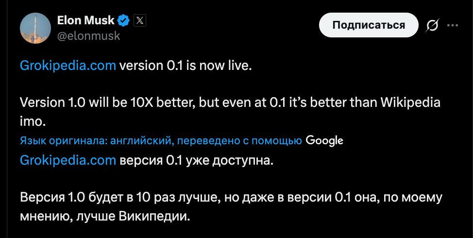 Основатель компании X (бывший Twitter) Илон Маск представил новый проект — Grokipedia, альтернативу Википедии, статьи в которой пишет искусственный интеллект Grok, интегрированный в социальную сеть X.