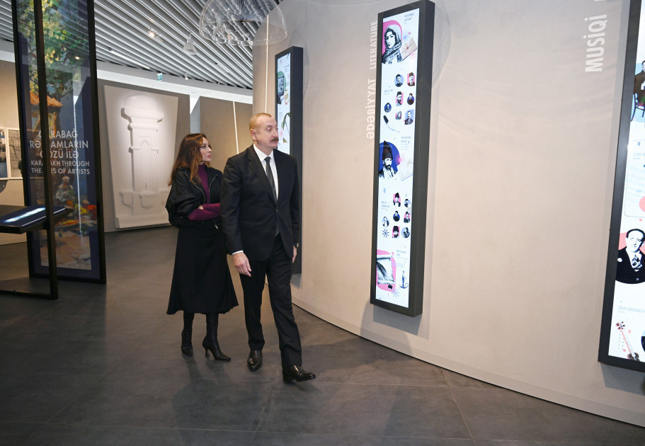Президент Ильхам Алиев и первая леди Мехрибан Алиева приняли участие в открытии Музея Победы в Баку.