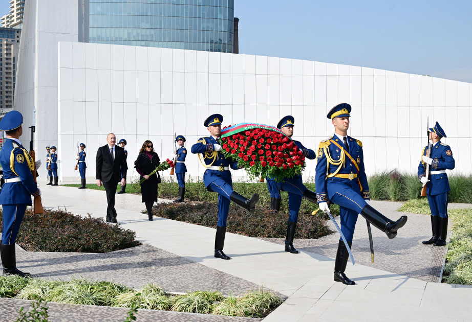 Первая леди Мехрибан Алиева возложила цветы к памятнику.