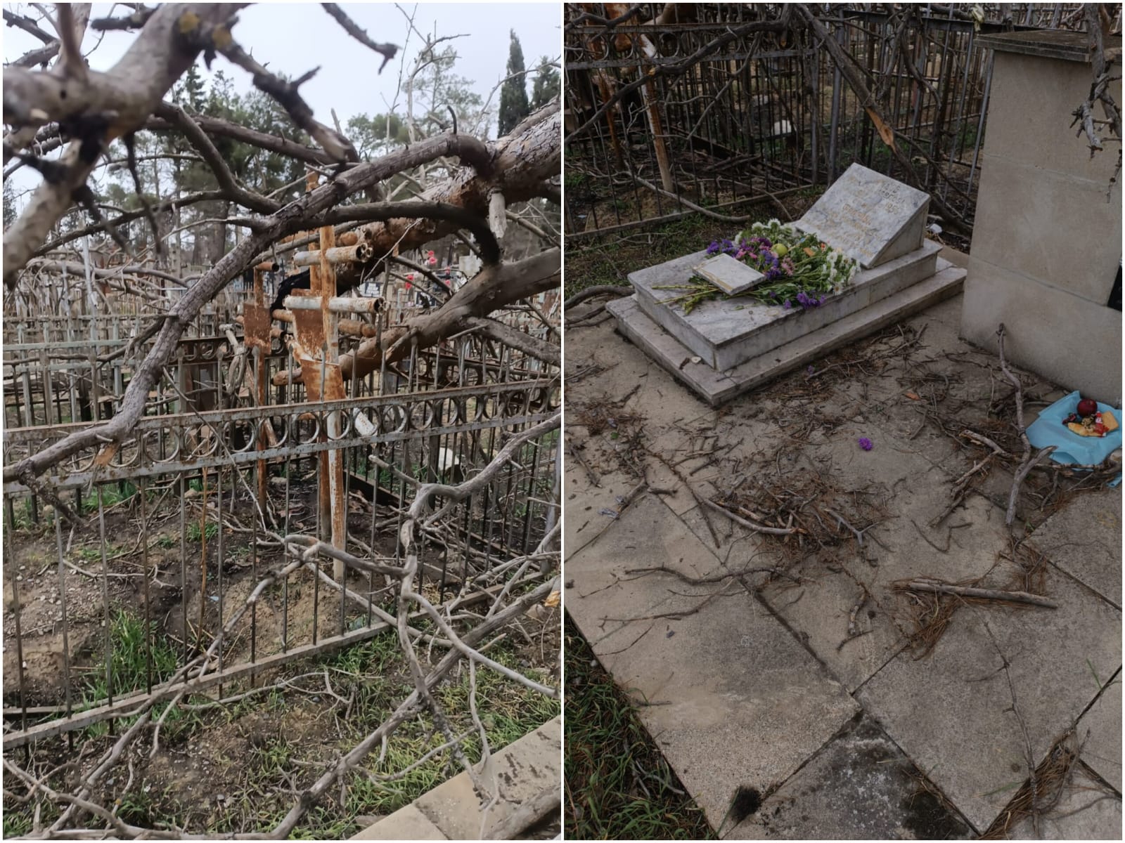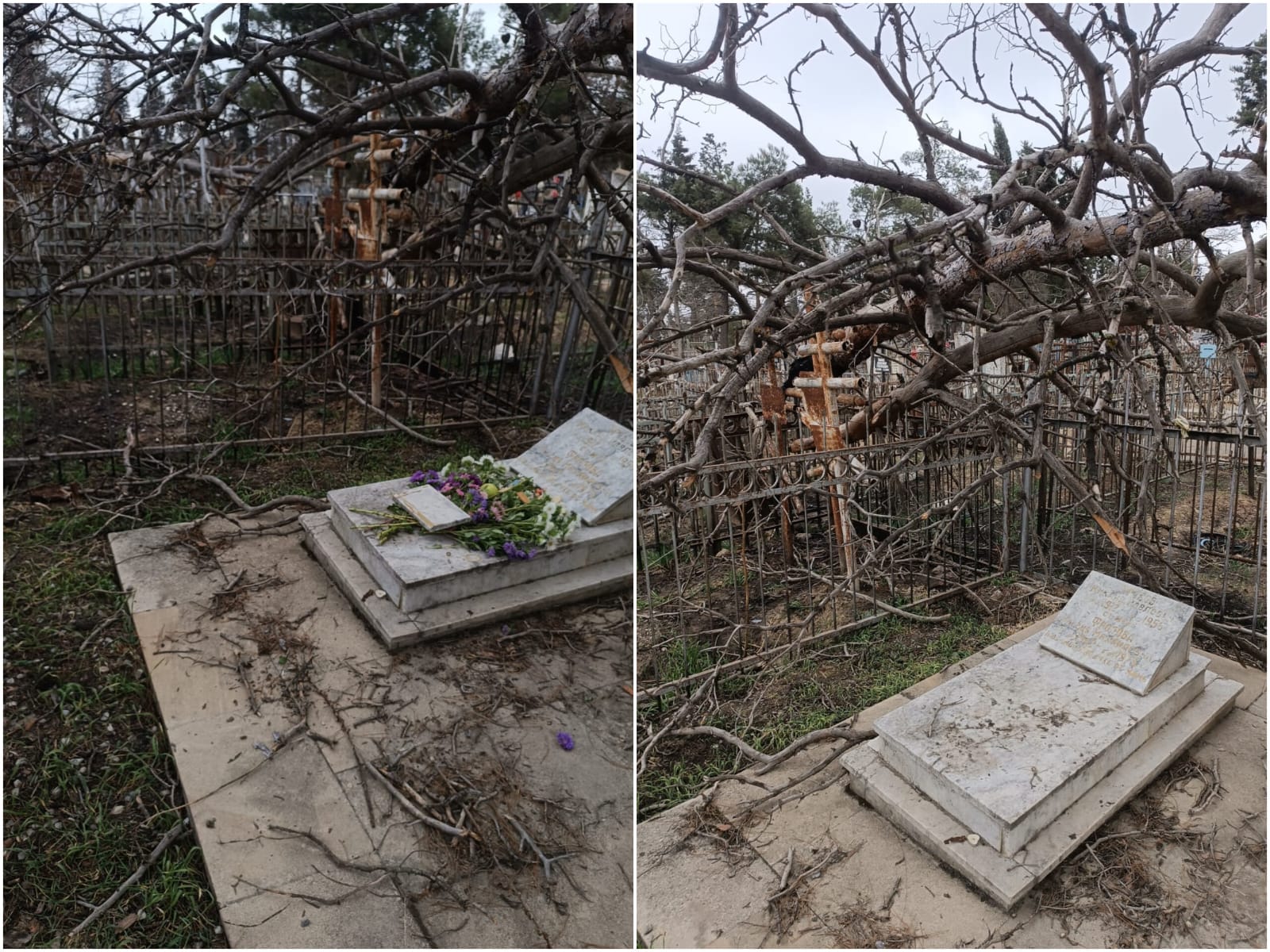 «Сегодня я поехала на кладбище, у меня там такое творится - это вообще невозможно. Я была в последний раз в августе, а сегодня поехала и увидела страшную картину: памятник разбит, все деревья сломаны, само кладбище в таком состоянии, что «мама не горюй»... Деревья поджигают, валятся именно подожженные, и видно, что они поломались не от ветра, а от огня. Я до сих пор в себя прийти не могу», - рассказывает женщина.
