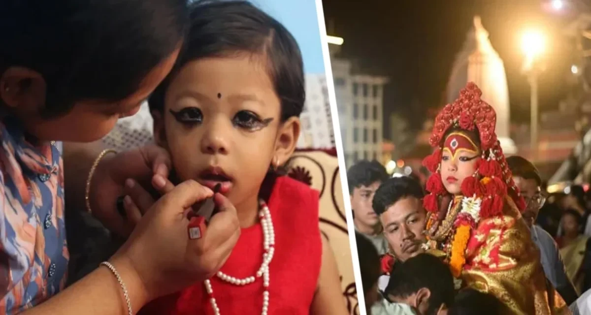 Кумари почитаются как индуистами, так и буддистами. Они носят красное платье, волосы собирают в пучок на макушке и рисуют на лбу символический «третий глаз».